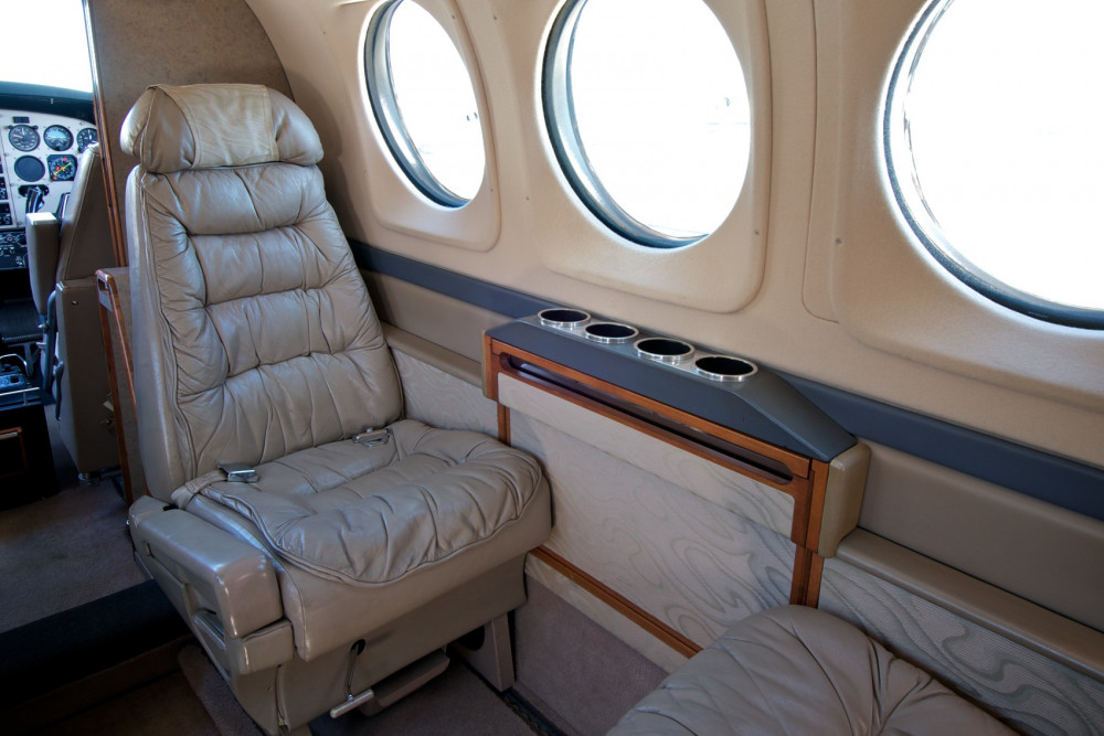 Six Passenger Interior Featuring Four (4) Individual Tracking Chairs in Mushroom Colored Leather w/Pullout Executive Tables