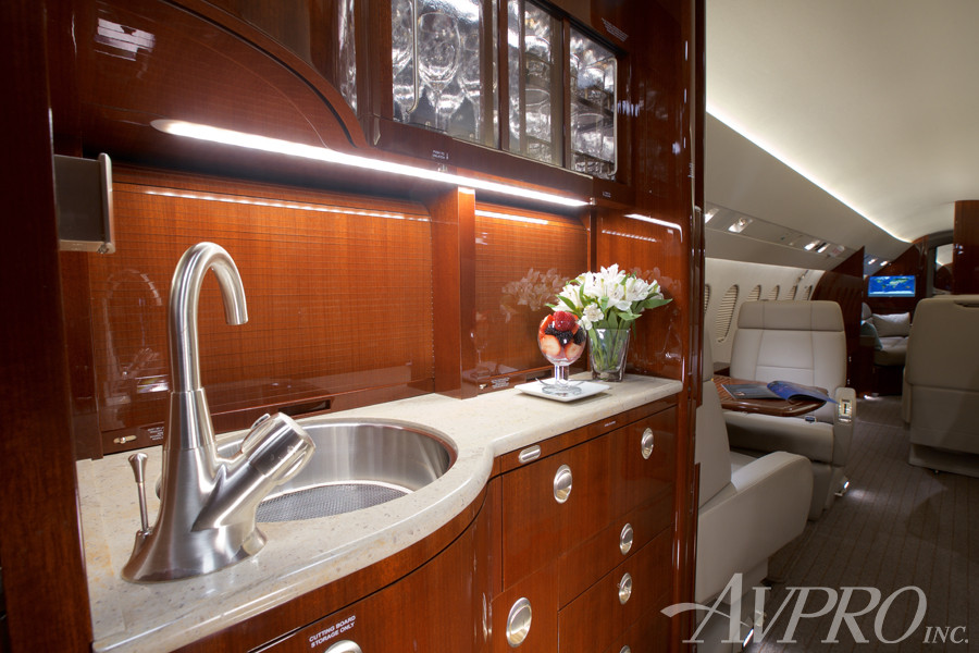 Well-appointed fourteen (14) passenger configuration. The forward cabin features a third member crew seat and a fully equipped galley and galley annex with a sliding pocket door for additional privacy.