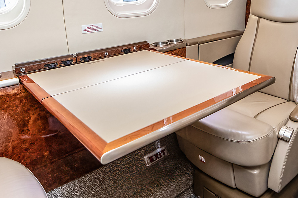 Beige Leather Seats, Beige Carpet with Vinyl Runner, Burlwood Woodwork, and Brushed Nickel Hardware