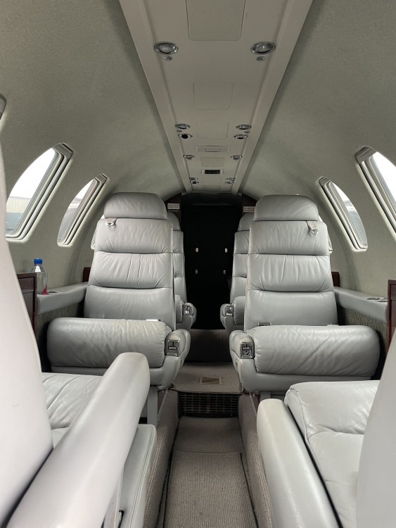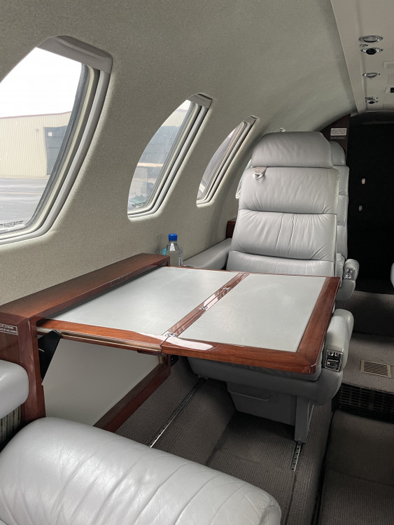 Executive 8 passenger, Medium Gray leather seating, mid cabin club, Forward LS complete Galley, Dual mid-cabin worktables, Belted Lav