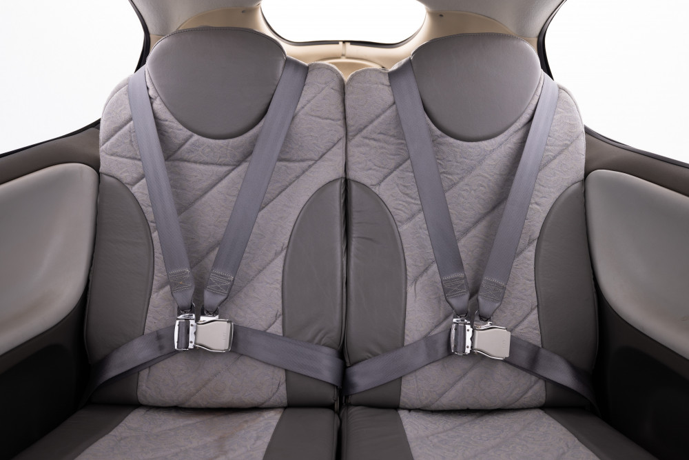 Two Tone Grey Fabric/Leather Seats and Side Paneling and Grey Carpeting