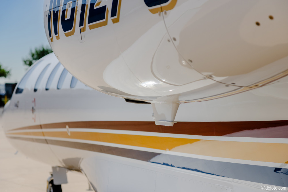 Snow White Fuselage, with Metallic Crimson, Gold, and Blue Stripes