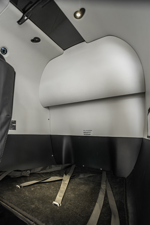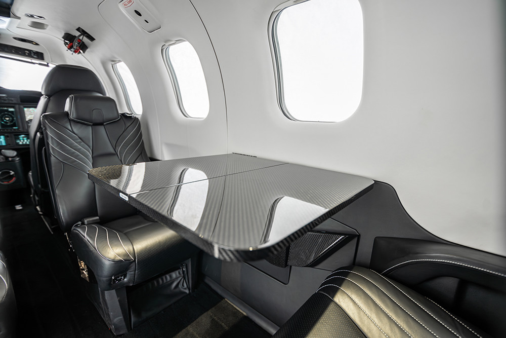 Black Leather seats with light stitching, black vents and lights with Carbon Fiber Table and upper Accent package. Six genuine leather seats with adjustable backrests and folding arm rests.