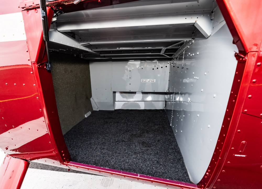 Volcanic Red with Sand Metallic Trim. Hinged Doors