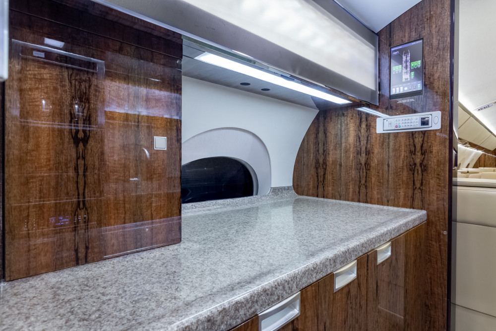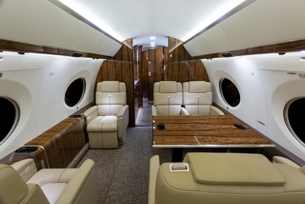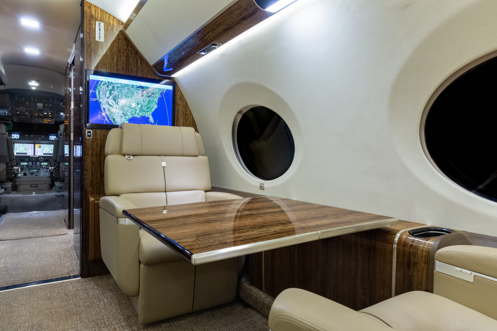 This luxurious fifteen (15) passenger floor plan features a three-zone cabin with an AFT galley, forward crew rest, left hand forward crew lavatory (full size), electric window shades, aft passenger lavatory, and an in-flight accessible baggage bay.