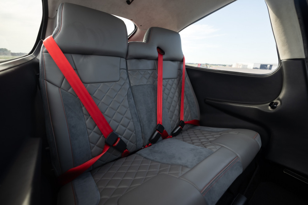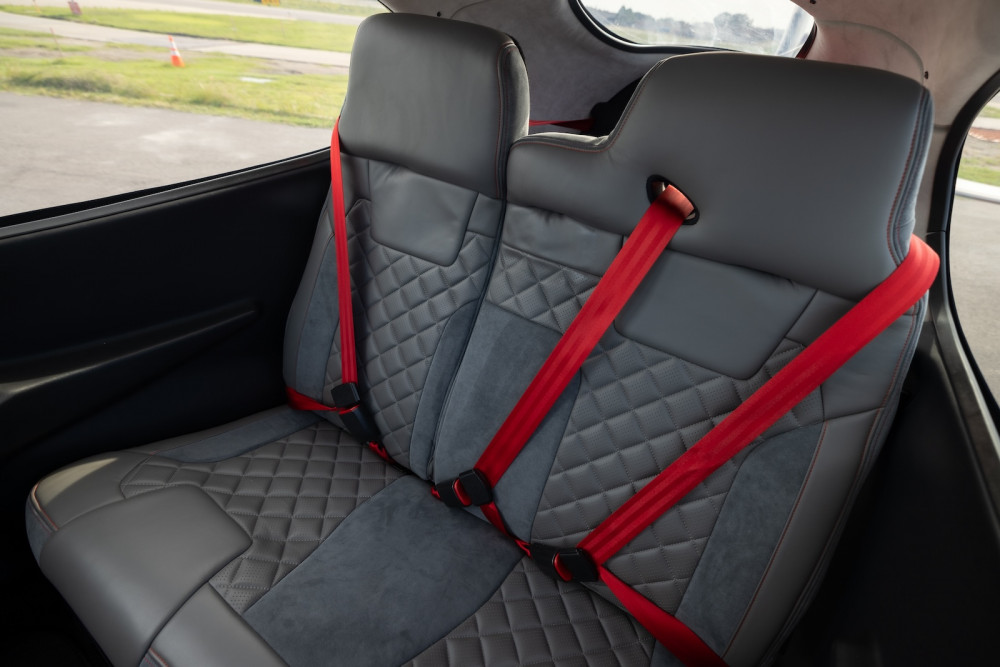 Xi Edition with premium grey leather and alcantara interior with red accent stitching and seatbelts. Carbon Instrument panel with black air vents and grey Alcantara headliner.