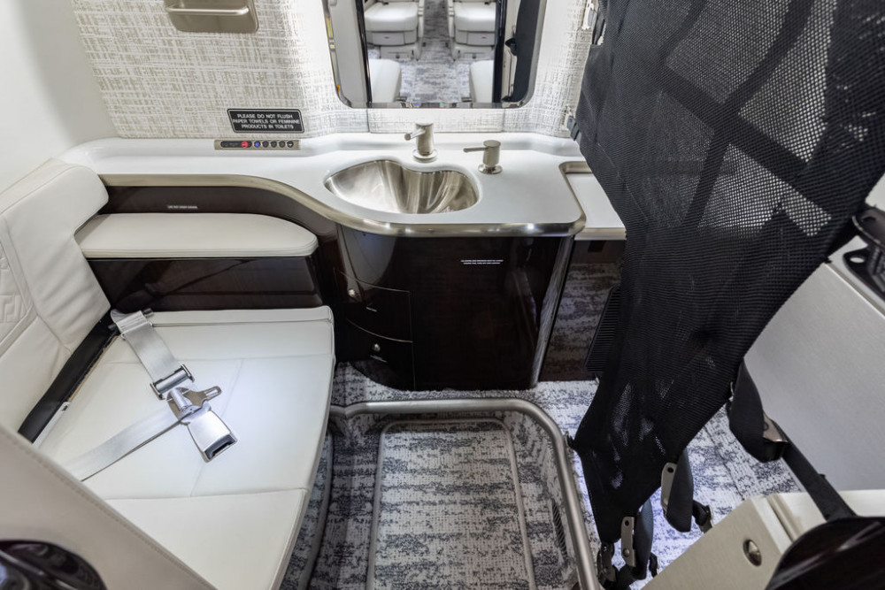Aft Lavatory: Aft vacuum toilets with a belted seat rated for