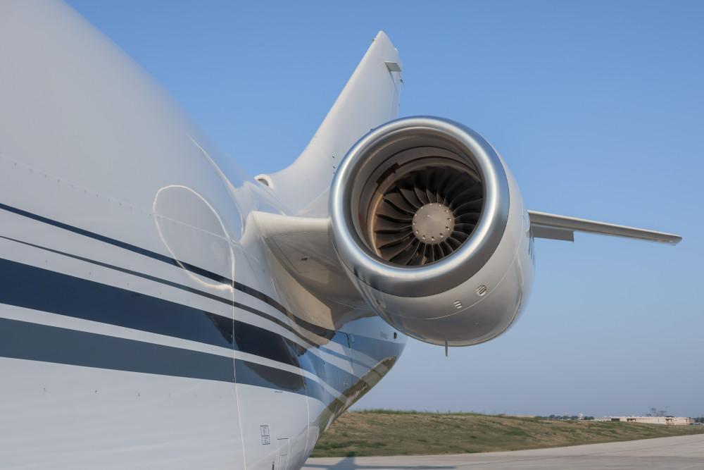 Aircraft is overall Matterhorn White with Ming Blue and Medium Silver Metallic Stripes. Painted at