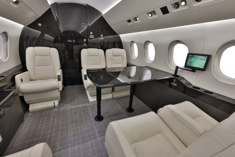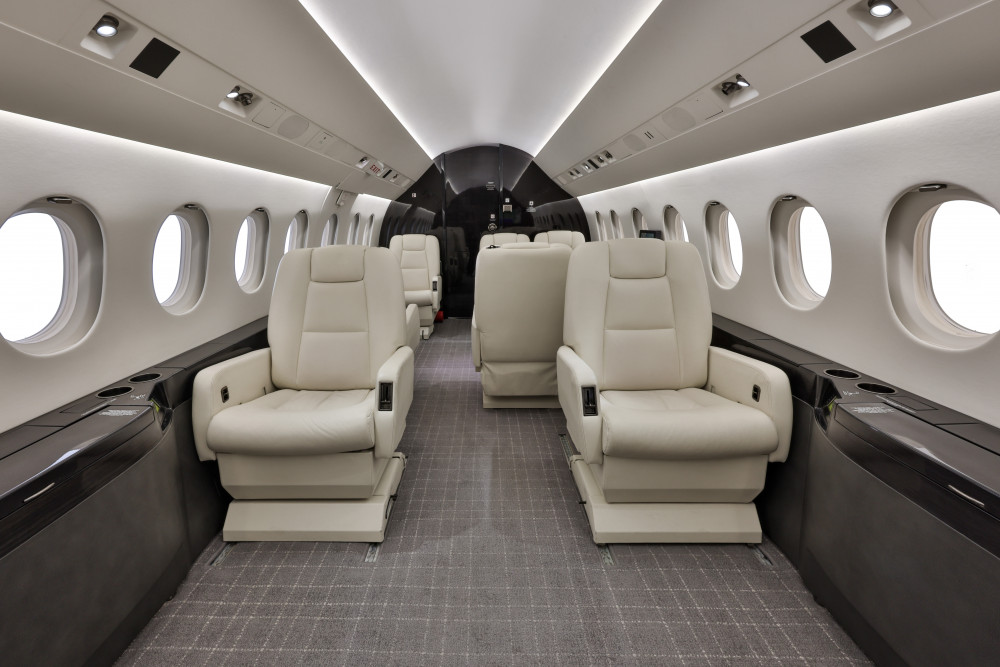 two (2) seats on RH side, forward and aft facing. LH side has four (4) place conference group seating. The cabin is