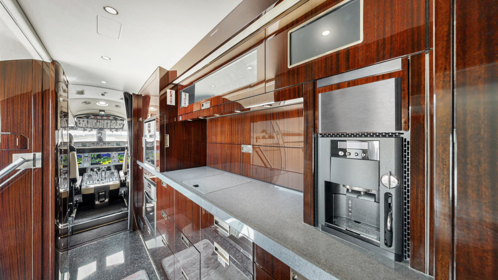 • Entertainment Suite (Zone 3) features a three (3) place full-berthing divan on the LH side and a credenza with 40" monitor on the RH side