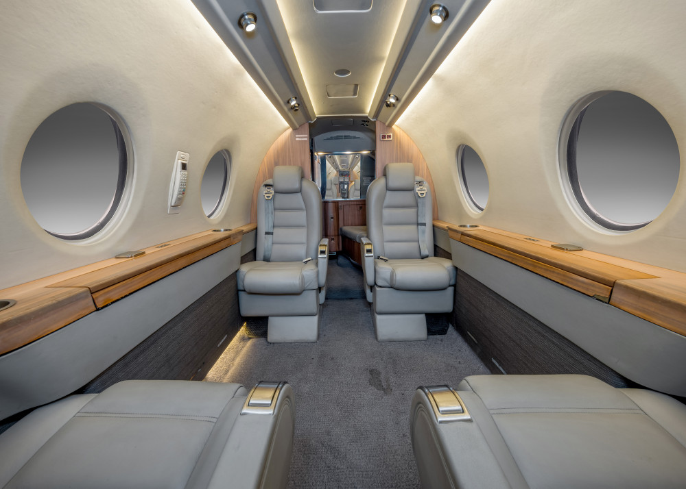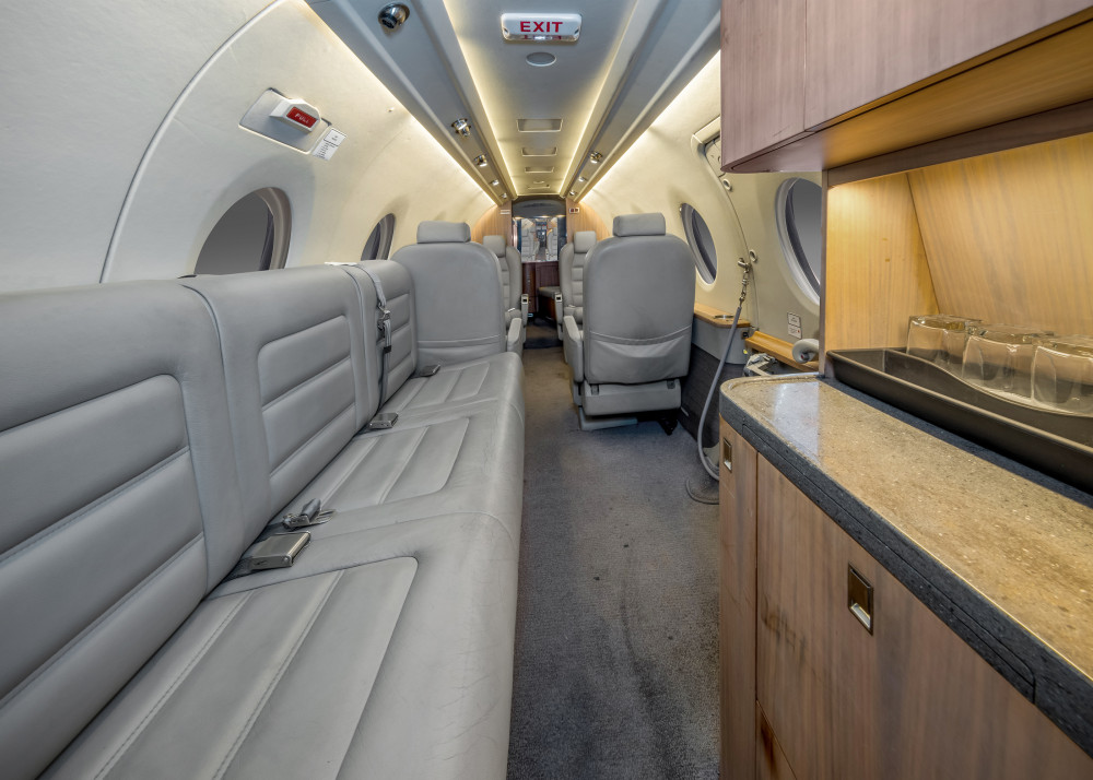 8 Total Pax Interior with FWD LH 3-Place Divan, 4 Club Seat Arrangement with Pull Out Tables and Belted Seat in Aft Lavatory. Fwd LH Galley with Ice Storage, Dry Good Storage. Aft Lav with Storage and Toilet.