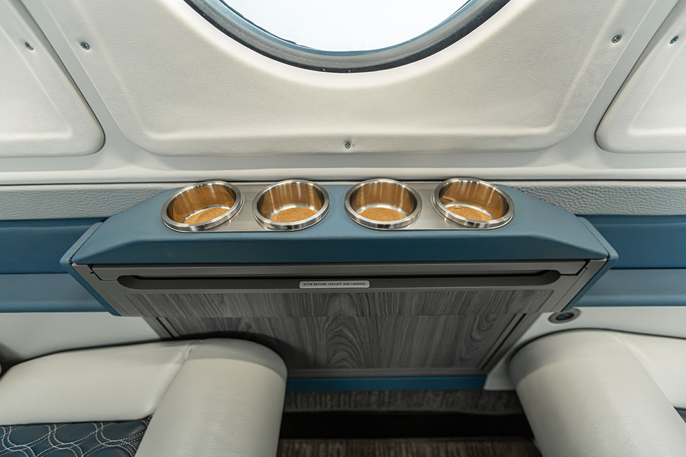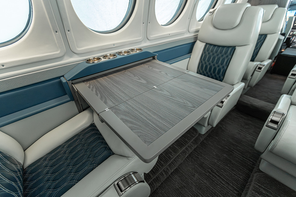 The interior features cabin seating for eight with a four-place club, two forward rear facing seats, a belted lav and an aft jump seat. Refurbishments include new leather cockpit lower sidewalls, leather crew and passenger seats, headrests, carpet, cabin window panels and headliner. The cabinets have been refinished. The seat belts are re-webbed, plated components refinished, baggage net and curtain are new. The Mapco system was replaced with three pull out drawers. Interior upgrades completed in 11/24 by Stevens Aviation.