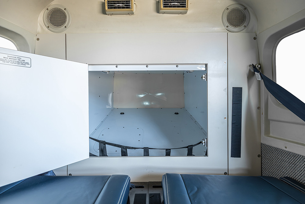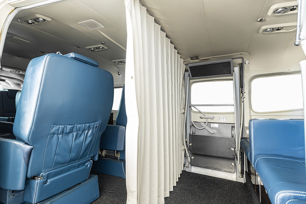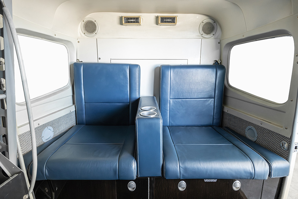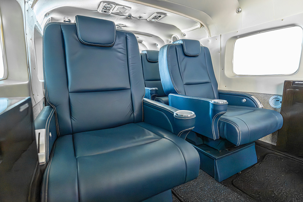 Eight passenger executive interior with center club seating, right hand refreshment center, left hand storage center, cockpit center console, flushing aft potty, ASIC pilot and co-pilot door storage. The executive interior was installed by Capital Aviation in 2021.