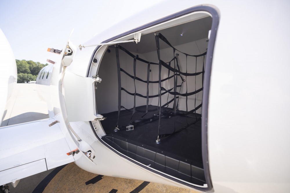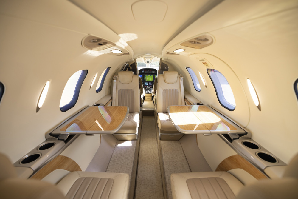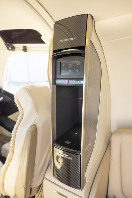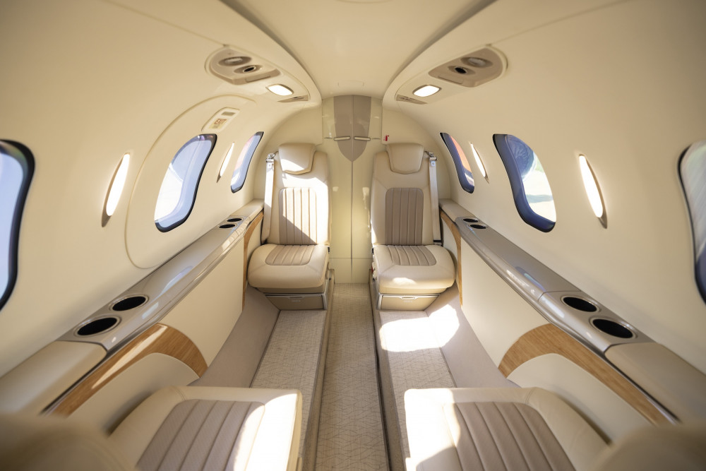 The interior is configured in a 6-passenger layout with a club plus a belted side facing seat. Additionally, the aircraft features a private fully enclosed aft lavatory that is certified for occupancy during takeoff and landing.