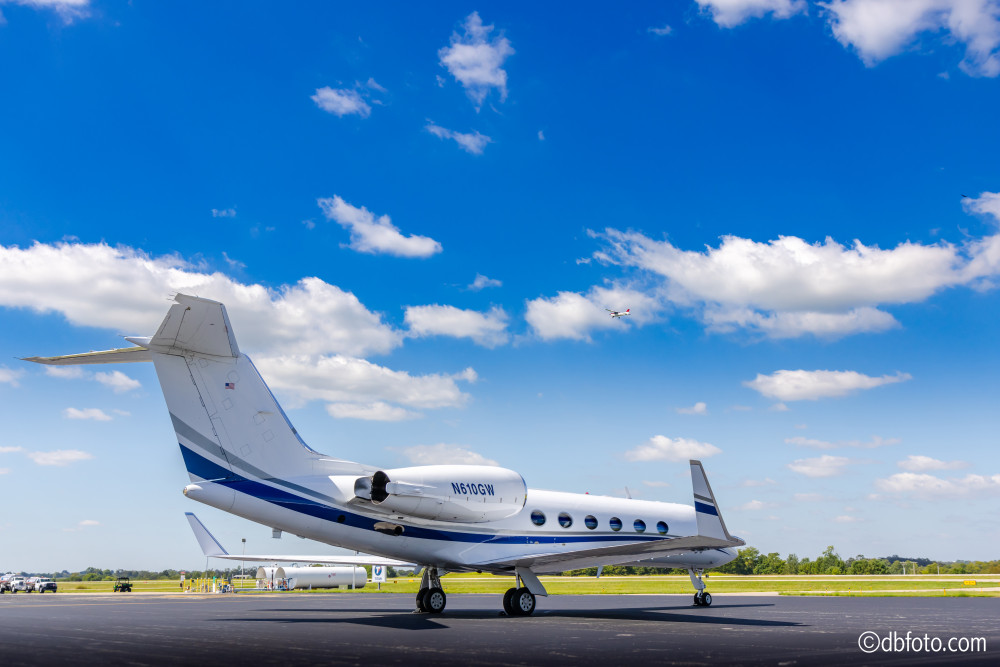 Completed by Duncan Aviation in November 2017. Matterhorn White w/ Blue and Gray Stripes. In 2021, refinished brightwork, repaint of winglets and tail number and new RH pilot window installed.