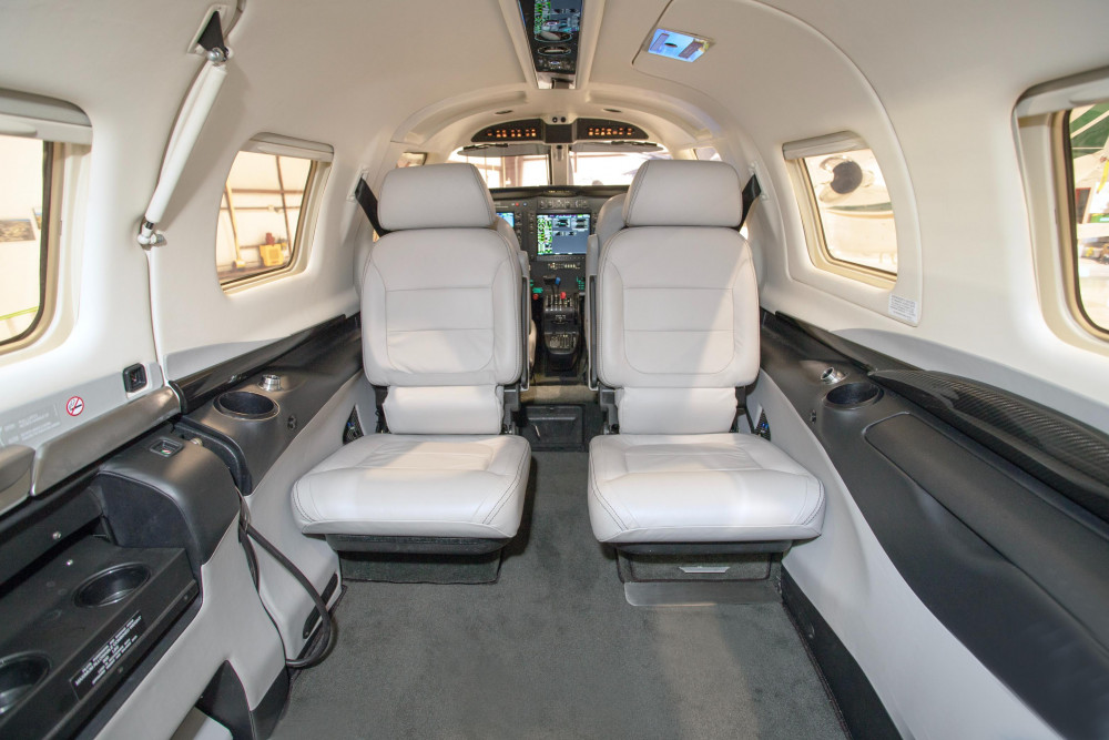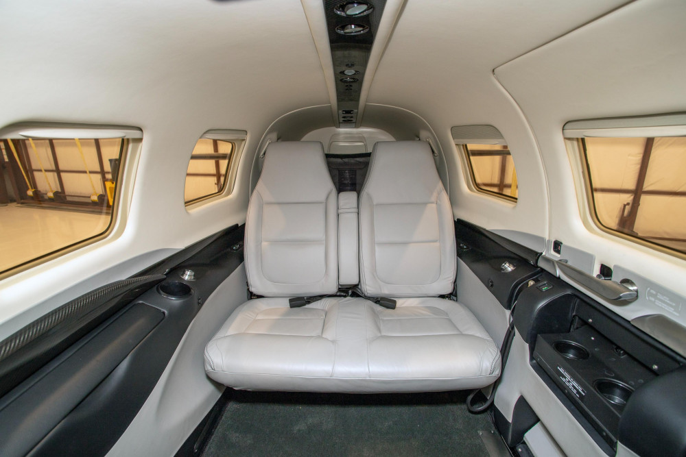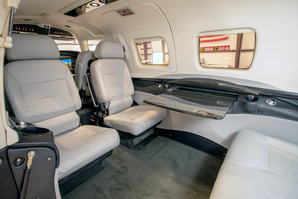 Geneva (Gray) Executive Interior w/ Chrome & Wood Accents, Electroluminescent Placards, Matching Carpet Runner, Carbon Fiber Executive Writing Table, 110 Volt Power Outlet (Aft Cabin), USB A and C Charging Ports (Cockpit and Cabin). Bose ANR Jacks (Cockpit and Cabin)