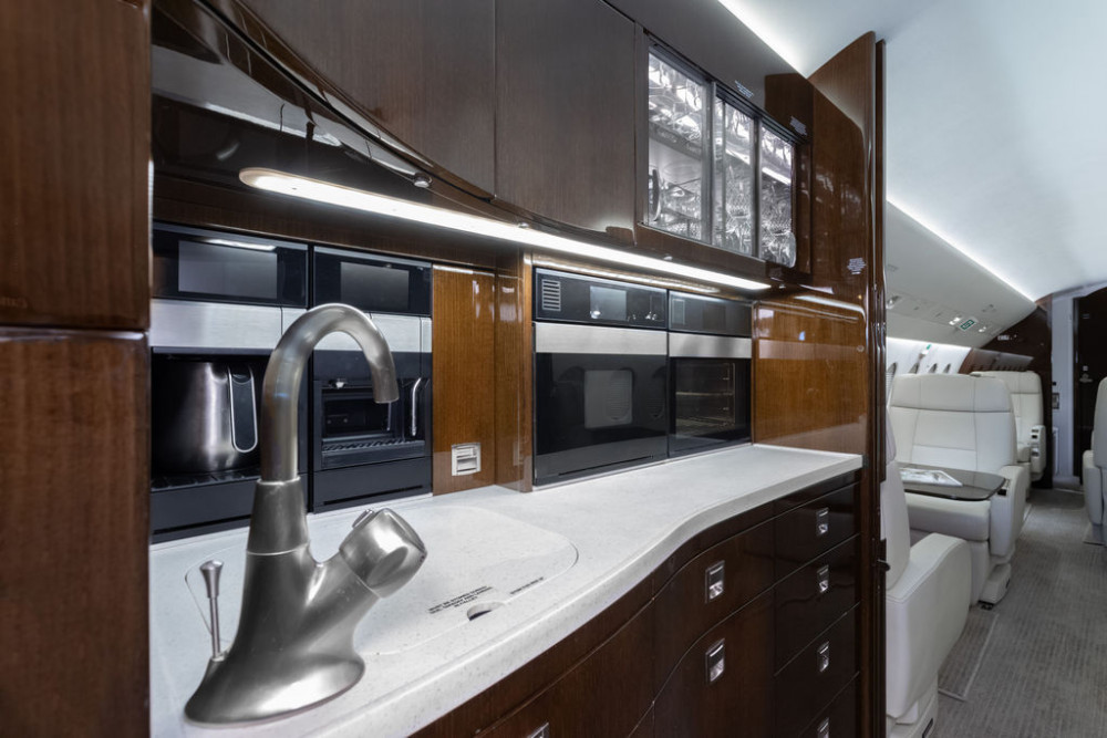Ten (10) passenger interior features a (4) four-place club arrangement in the forward cabin, followed by a (4) four-place conference group with an oversized table opposite a (2) two place clube.