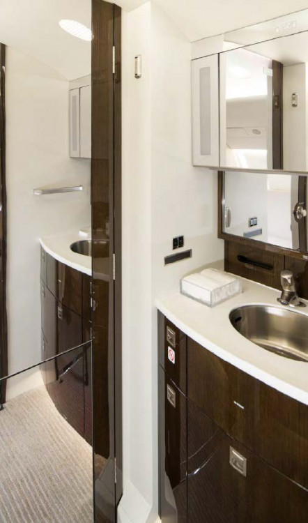 Ten (10) passenger interior features a (4) four-place club arrangement in the forward cabin, followed by a (4) four-place conference group with an oversized table opposite a (2) two place clube.