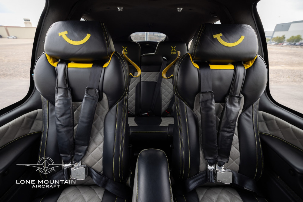 Xi custom black leather interior with yellow and gray accents