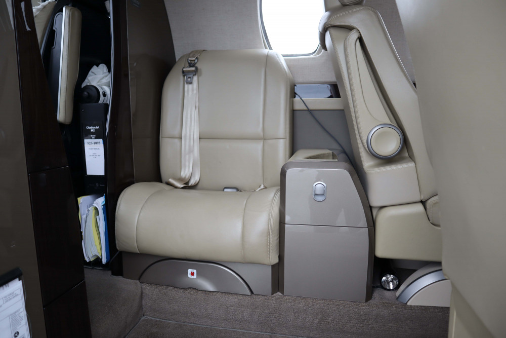 – Cabin seating for 5 in a center-club configuration with Left-hand aft belted flushing toilet
