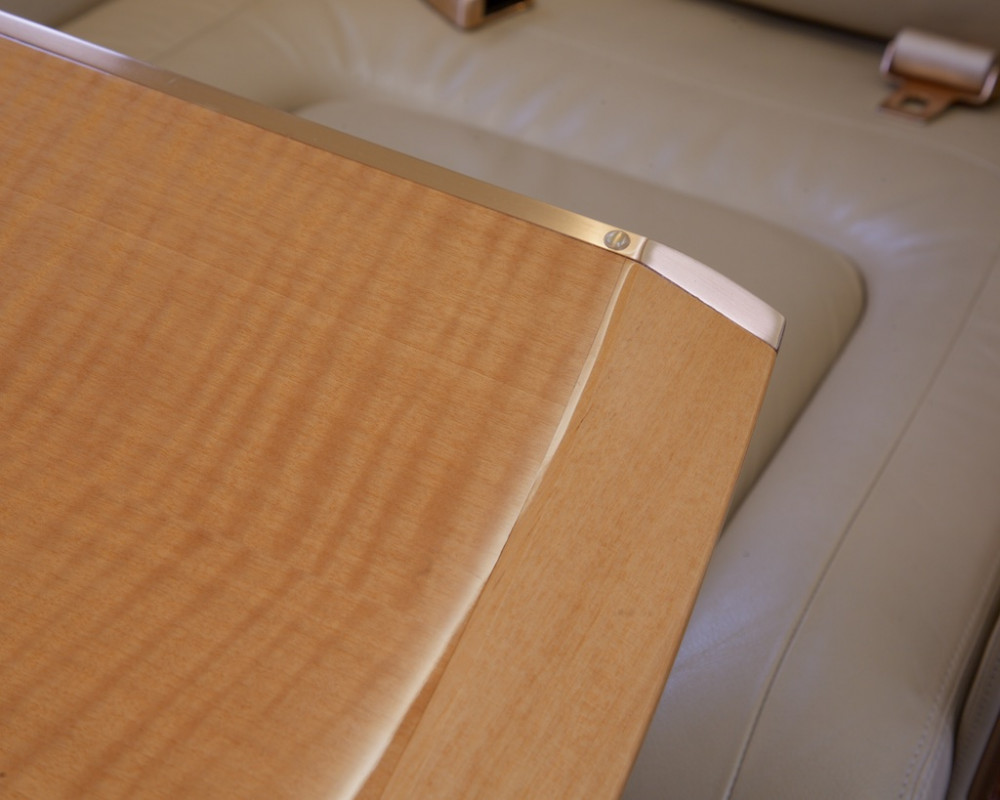 Executive for 10 passengers. Forward 4-place club, two place divan across from four place conference group. Forward galley and fully enclosed aft lav.