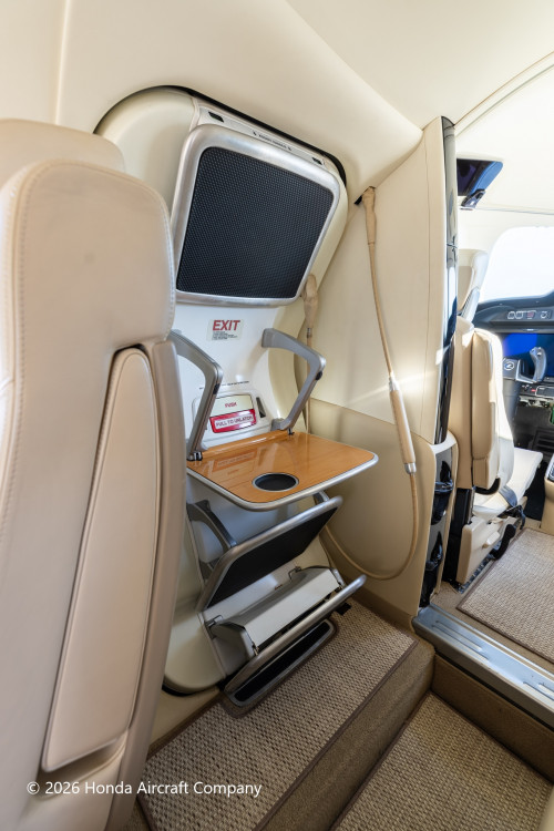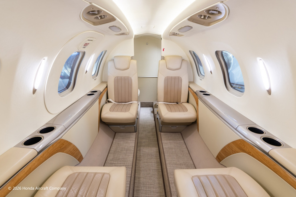 The interior is configured in a 6-passenger layout with a club plus a belted side facing seat. Additionally, the aircraft features a private fully enclosed aft lavatory that is certified for occupancy during takeoff and landing.