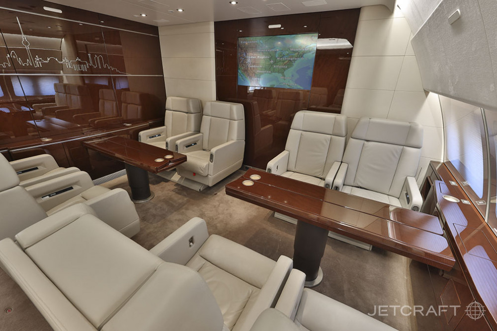 Forward Cabin Configuration - Executive Suite (7), Communication Center, Conference Room (12) & Lounge (8)