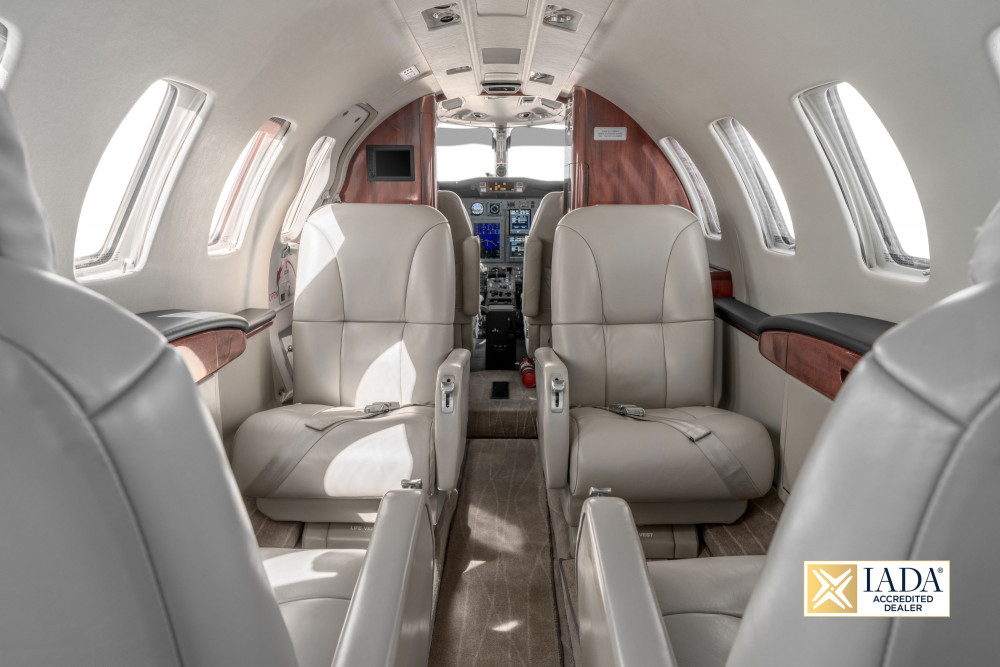 7 Passenger Interior Featuring a 4-place club, 2 aft forward facing seats, a forward extended galley and aft belted lav seat